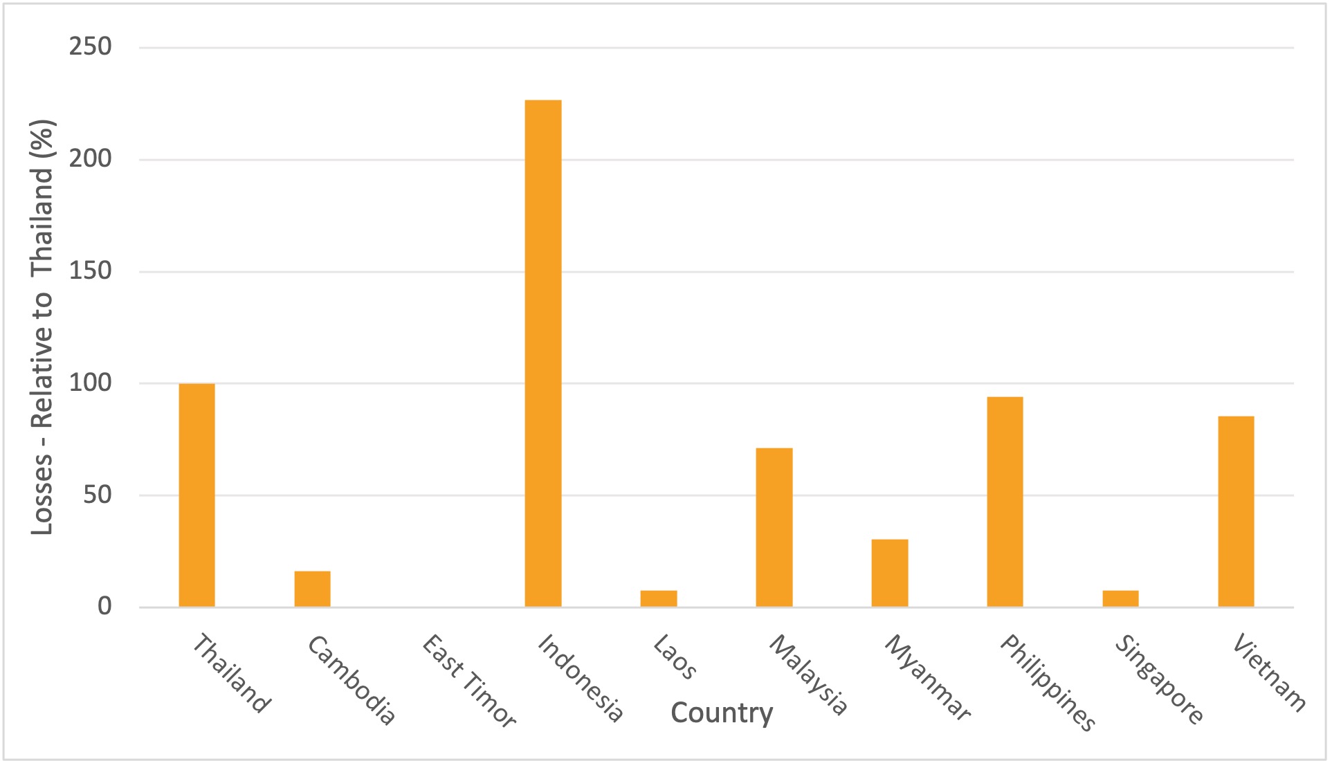 Figure 4 demonstrates that Thailand is second only to Indonesia in terms of likely losses should a large event occur.