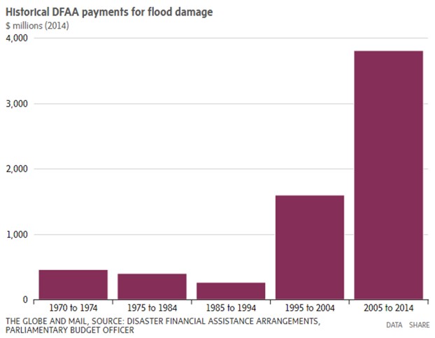 Figure 1: Historical payments for flood damage have increased markedly in the past decade (Mcclearn, 2019).