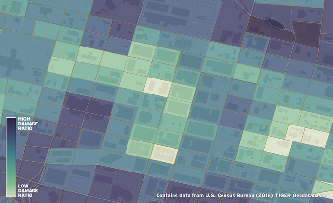 For each census block, we provide a range of pricing data with adjustment factors to account for different property elevations. This provides the most realistic estimate of the risk for each property type, more accurately differentiating financial costs between properties such as a ground floor apartment and third floor apartment, which would have significantly different annual damage costs.