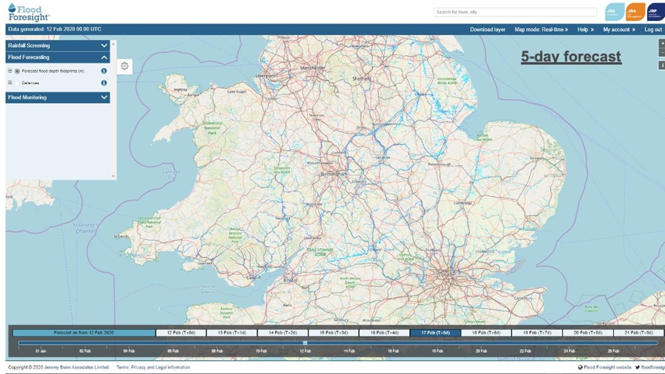 Figure 6: Flood Foresight forecast Storm Dennis, five days in advance.