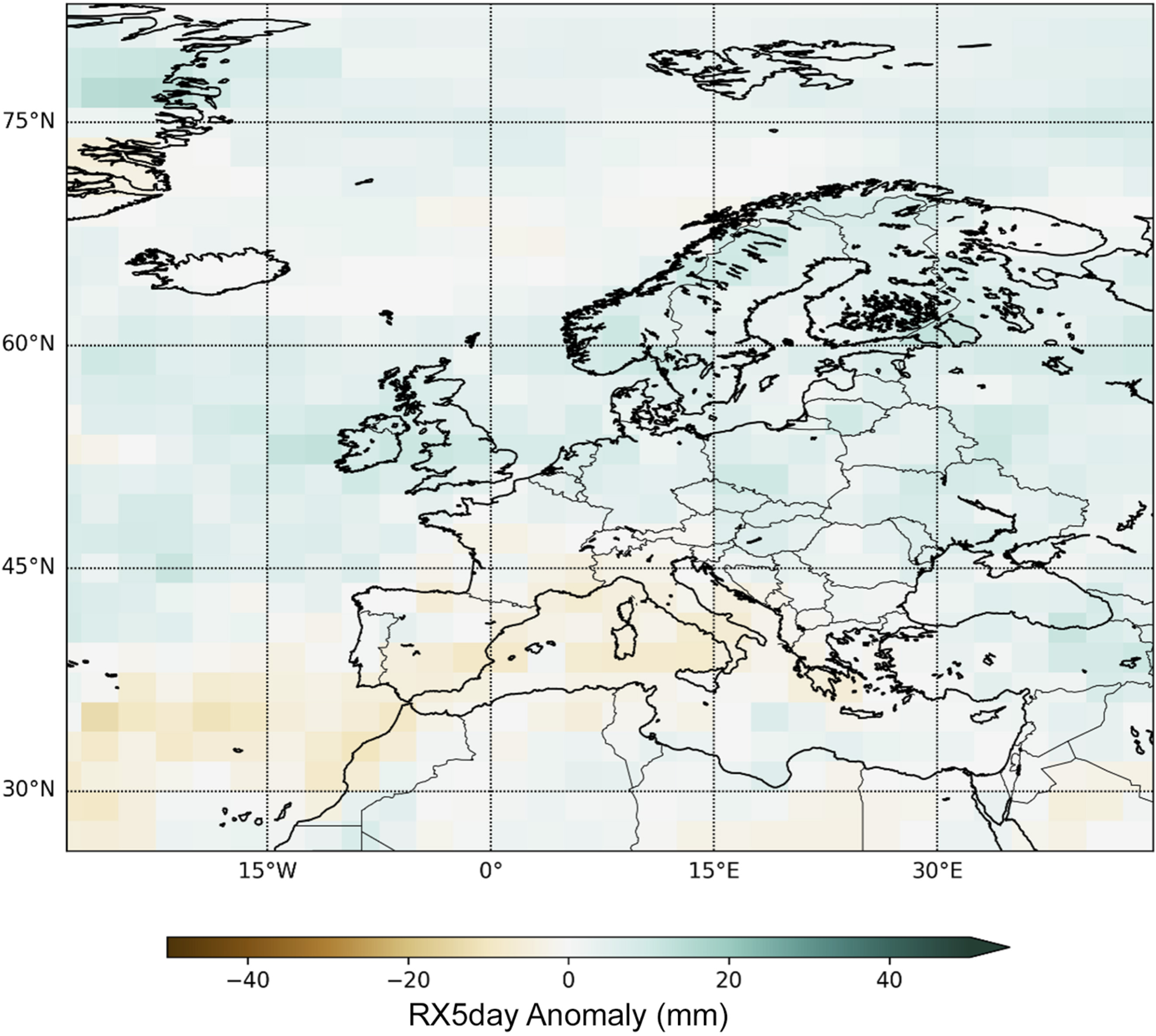 The anomaly tells us how a variable will change between two time periods. The benefits of using the RX5day anomaly are: