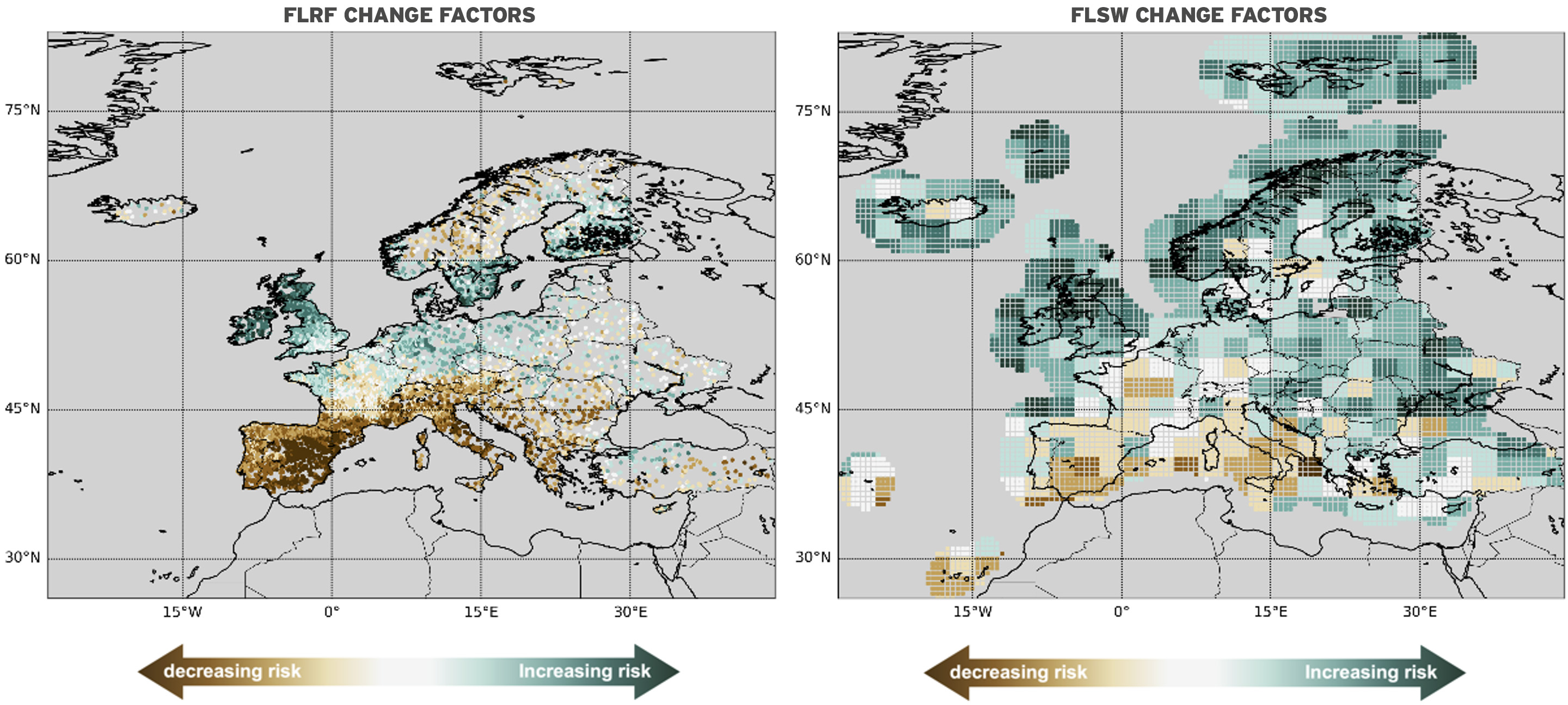 Comparison of the river change factors with the IPCC Fact Sheet for Europe (IPCC, 2021) show that changes in river discharge corresponding to the return period of 1-in-100 for the mid-21st century present very similar patterns to the river change factors.