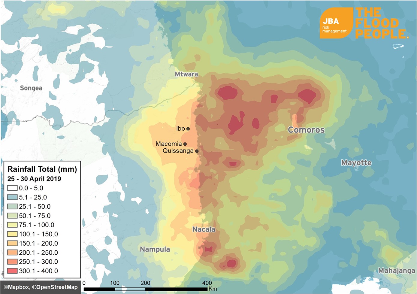 Cyclone Kenneth is the strongest cyclone to make landfall on the African continent since records began (OCHA, 2019). This latest weather system was predicted to result in twice as much rainfall as compared to Tropical Cyclone Idai (BBC, 2019), which caused 900 fatalities and approximately USD $2 billion of damage based on the impact to infrastructure (Reinsurance News, 2019). Further information on Tropical Cyclone Idai can be found in JBA’s previous report, available here.