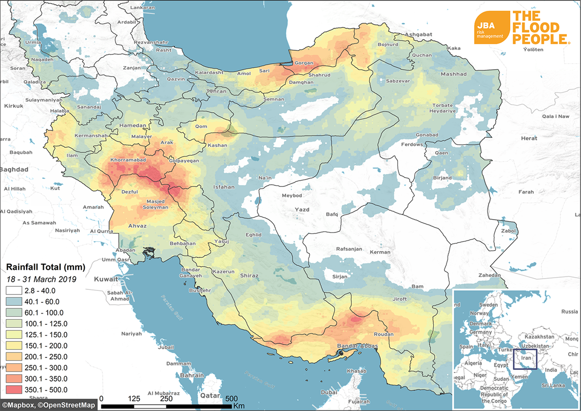 During the last two weeks of March, a large part of the south, west and north-east of Iran received between 200 and 500mm of rain (Figure 2).