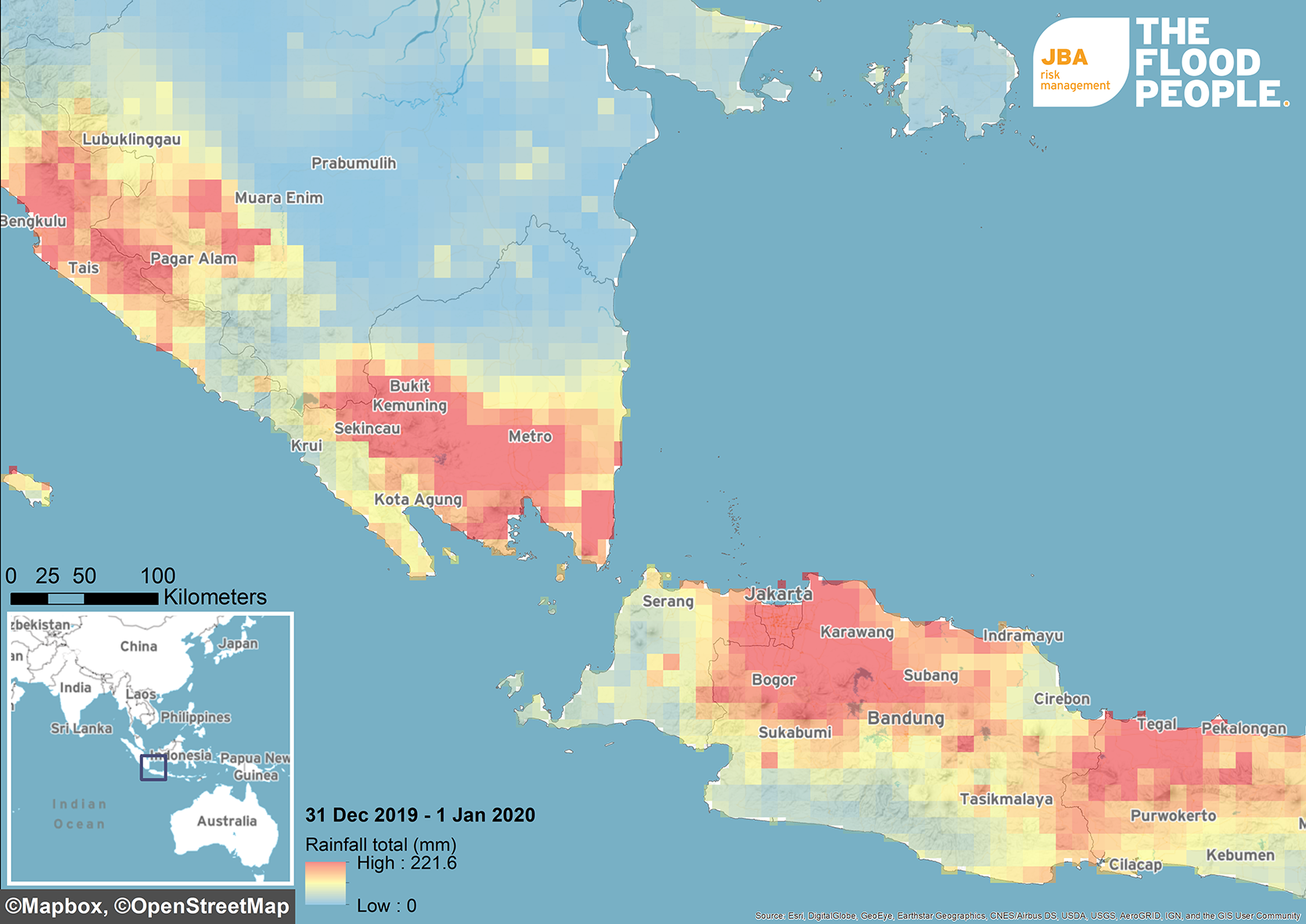 Indonesia’s Meteorology, Climatology and Geophysics Agency (BMKG) reported that the heavy rains were triggered by a convergence of wind patterns, with north-east winds meeting moist winds from the Indian Ocean to the south, leading to massive rain-producing clouds. Additionally, high temperatures increased the amount of water vapour in the air (ReliefWeb, 2020).